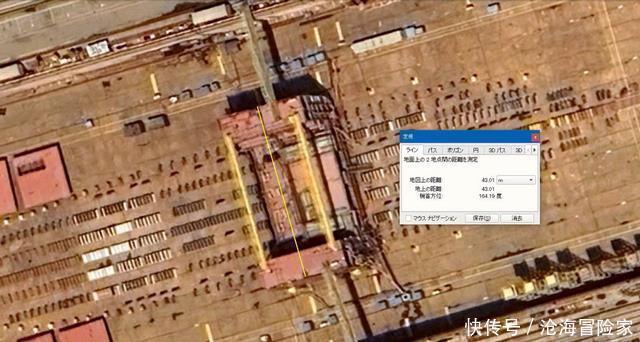 也不知道这算不算千呼万唤始出来了,一个巨大的分段出现在北方某船厂中。其实对于关注国产004航母的朋友来说,应该并不陌生,这个分段从出现之初就有很多网友关注,毕竟这分段太大了,当时就有网友开玩笑不是004航母,那就只有是核动力破冰船了。最近该分段也基本完成,那么究竟尺寸如何?004航母有没有可能超过福特级,成为全球最大航母呢? 根据商业卫星图片显示,位于300米以上的巨型船坞内,分段已经基本完成,船底保护层垫块显示出整个船体的雏形,而这个分段应该是在船体中间前方的部分。那么这个分段尺寸如何呢?有网友根据图片拉出尺寸,水线宽度尺寸大约是43米。